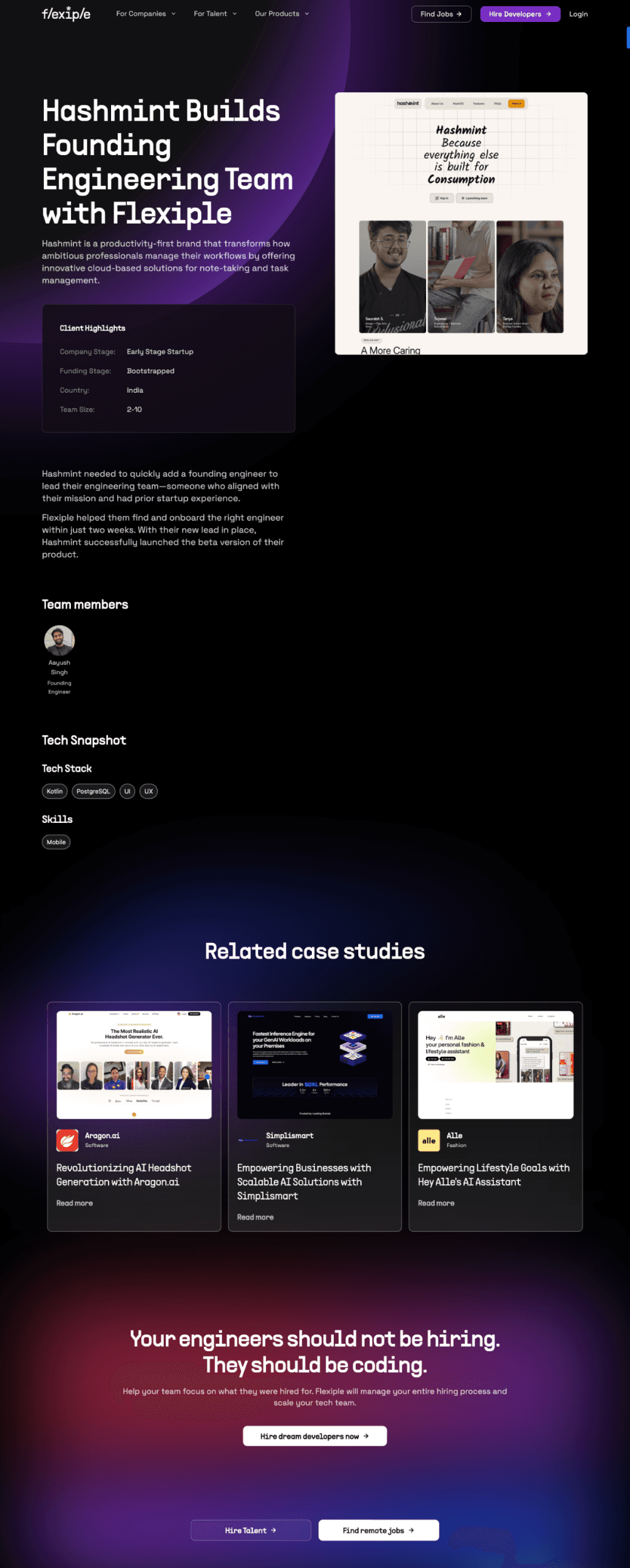 Therefore they decided to revamp the Web design of the Flexiple.com to a more modern & professional look which also showcased their professionalism in their tech hiring expertise.